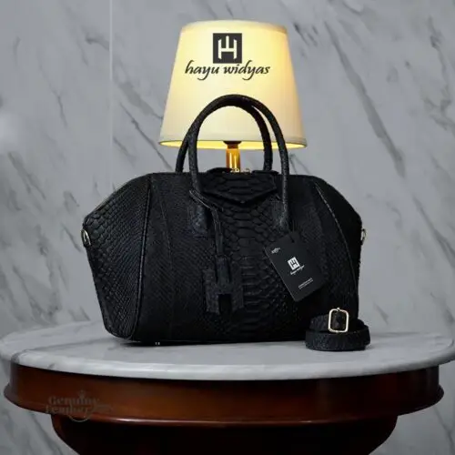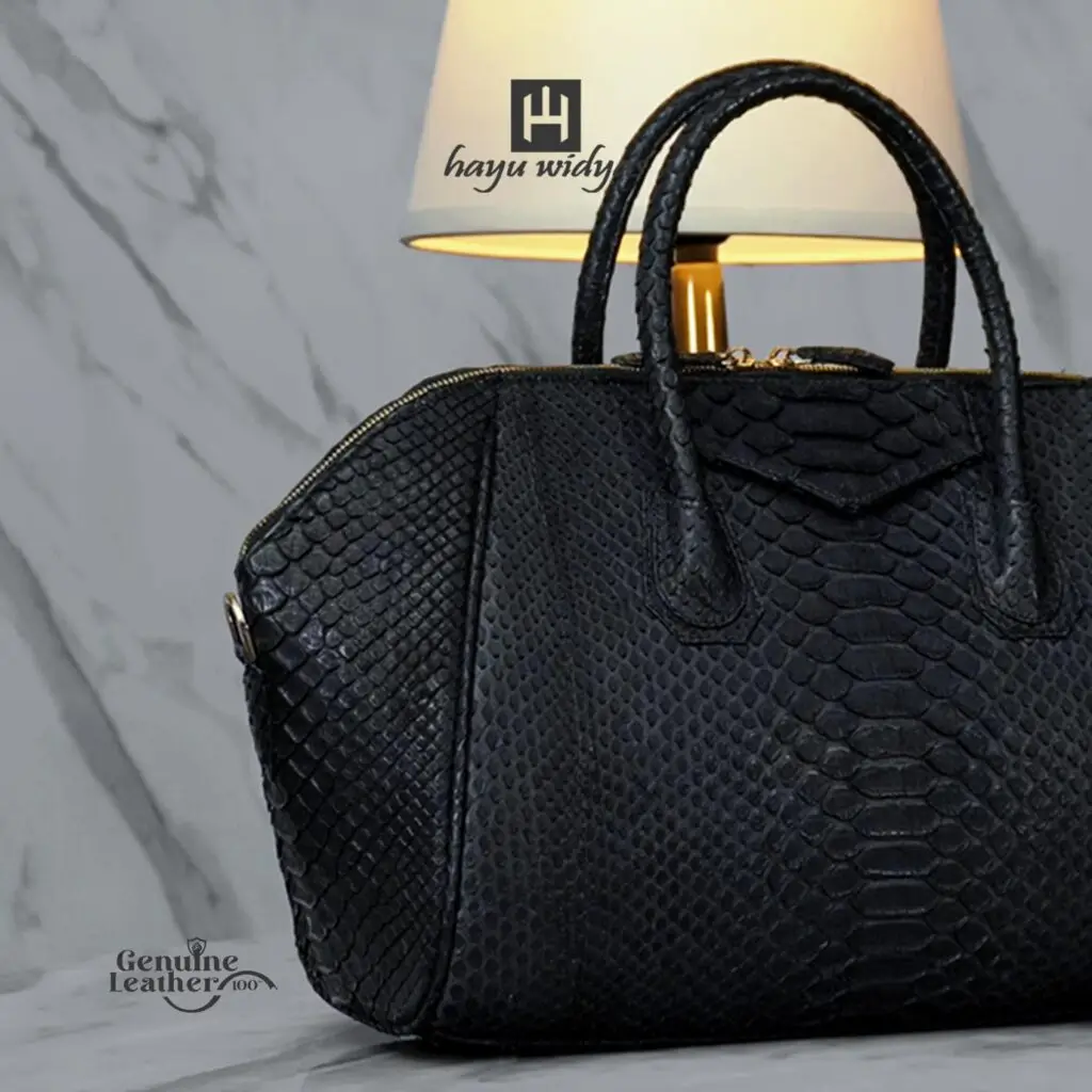 Hayu Widyas Handmade Juvina kulit Python asli.