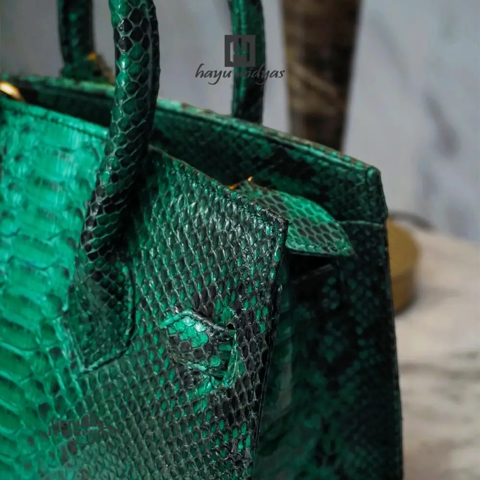 Hayu Widyas Handmade Myra kulit Python asli.